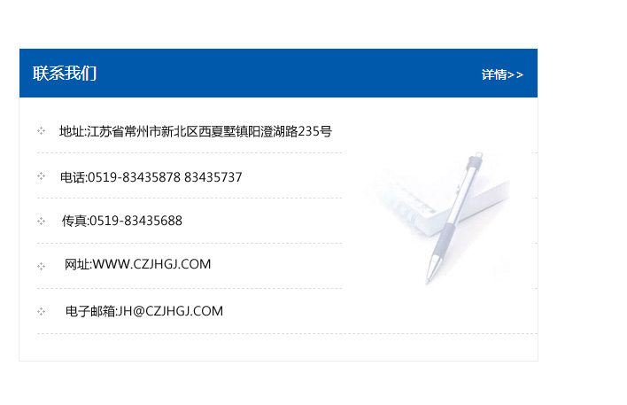 傳真:0519-83435688    郵編:213135    網址:WWW.czjhgj_com.dikinsh.com    電子郵箱:JH@czjhgj_com.dikinsh.com